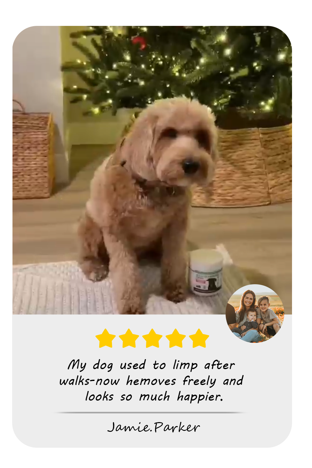 If your pup is slowing down—hesitating to jump, walking shorter distances, or feeling stiff after play—it may be joint discomfort. This is common in senior dogs, active breeds, and pups carrying extra weight.